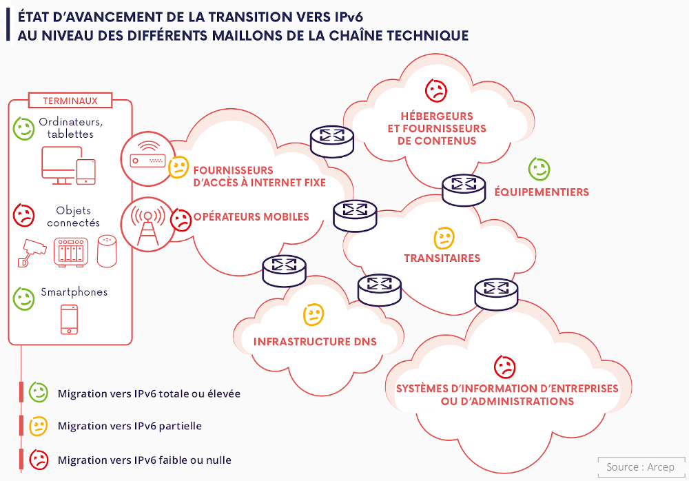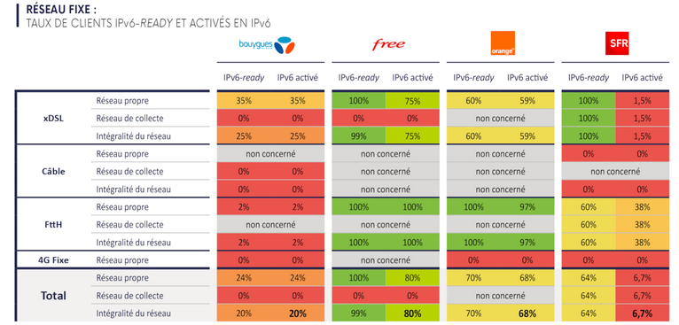 Lorsque le réseau et la box sont compatibles IPv6, le client est dit « IPv6-ready » (cf. tableau ci-dessous).
