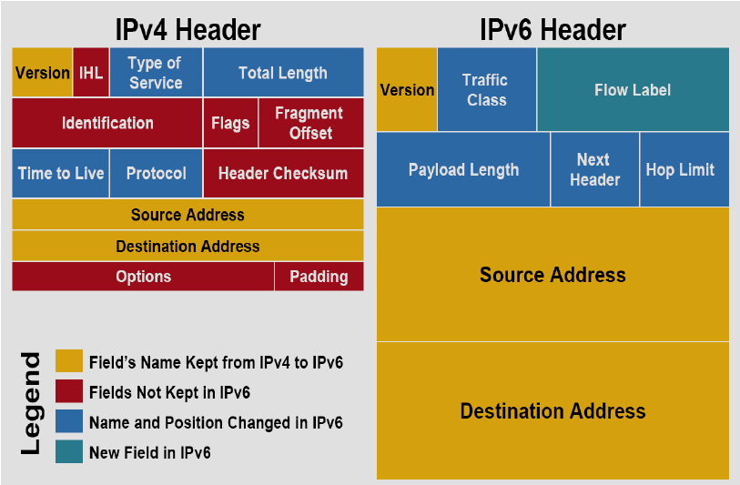 Les principaux changements entre IPv4 et IPv6 sont: