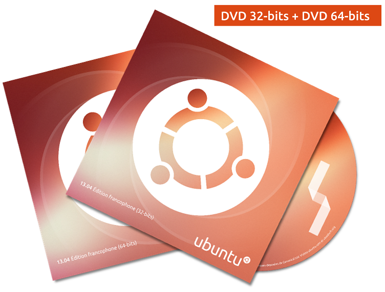 Comme tous les ans, l’association Ubuntu-fr modifie les images d’installation d’Ubuntu et vend des DVD avec Ubuntu entièrement en français. La version 13.04 est maintenant disponible depuis quelques jours. Les images des médias officiels d’installation d’Ubuntu sont disponibles dans le site officiel d’Ubuntu. Toutefois, ils ne sont que partiellement traduits en français. Seules des parties des fichiers de traduction de chaque langue sont inclus dans les médias officiels, afin de réduire la taille des fichiers d’images. Même s’il est possible de récupérer les traductions manquantes après l’installation d’Ubuntu dans un ordinateur, cette situation peut néanmoins être gênante pour ceux qui utilisent fréquemment une session live ou qui possèdent un ordinateur rarement connecté à Internet. L’association Ubuntu-fr s’affaire donc, avec chaque nouvelle version d’Ubuntu, de créer des médias d’installation en version complètement francisée. Vous pouvez retrouver dès maintenant la version 13.04 d’Ubuntu francophone en format DVD en éditions 32-bits et, pour la première fois, en 64-bits dans la boutique en ligne de l’association. Pour 1€ (hors frais de port), vous recevez un ensemble de deux DVD — l’un en édition 32-bits et l’autre en édition 64-bits. La boutique propose également des ensembles de 10 DVD, tous en édition 32-bits ou 64-bits. Pour les associations, GULL, BDE, LoCoTeam et toute organisation non commerciale, l’association Ubuntu-fr vous invite à la contacter directement pour des livraisons en plus grandes quantités.